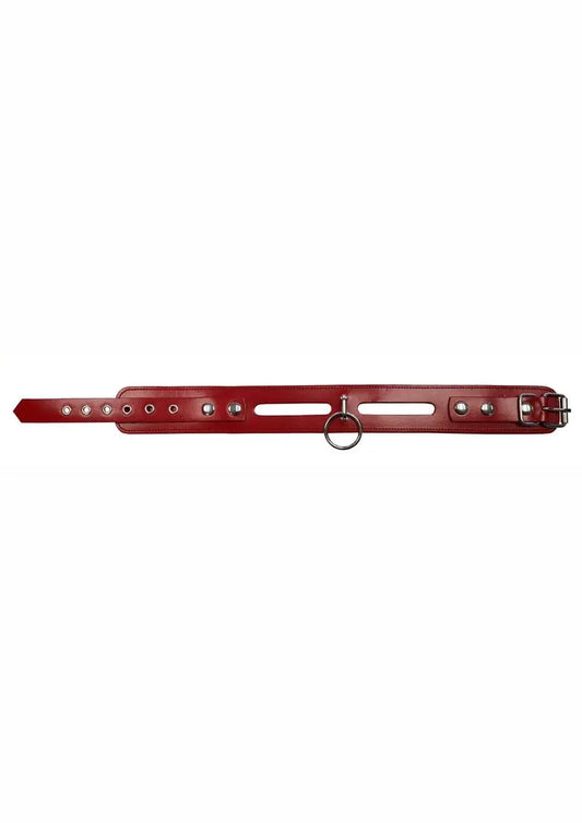 Adjustable Cutaway Leather Collar with O-Ring | Red