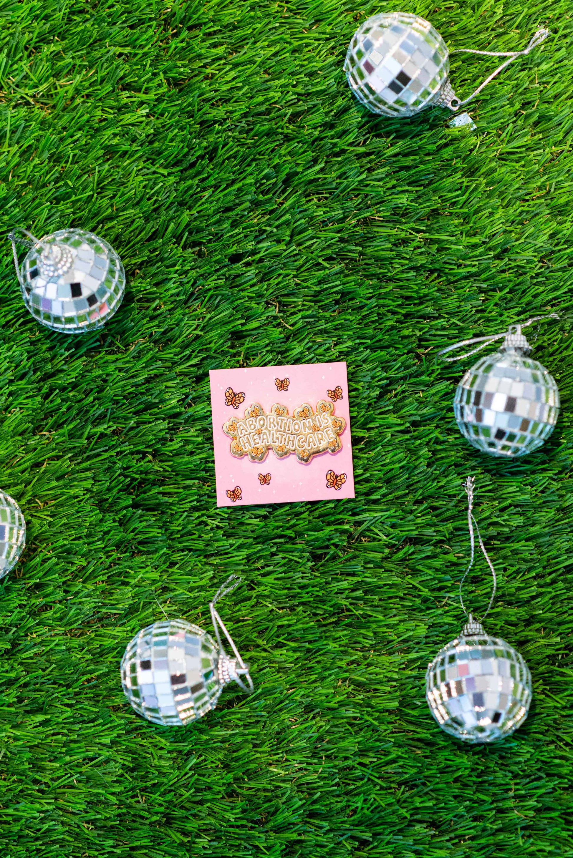 This pin is all about sparking joy and spreading a playful message while advocating for reproductive rights. With shimmering gold metal and lively orange monarch butterflies dancing around the bold text, it's a statement piece that embraces the power of transformation. Wear it proudly on your favorite jacket, bag, or anywhere that needs a touch of sparkle and sass. Let these vibrant butterflies remind everyone that reproductive choices matter and should always be respected. Get ready to rock this pin and unleash the magical flutter of conversations and change.