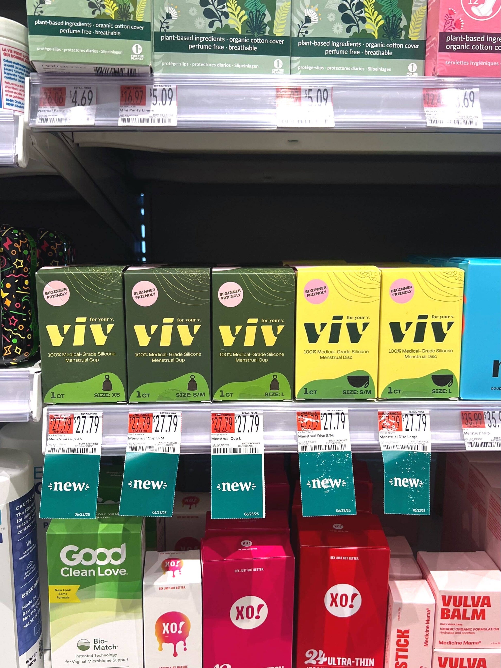 The Viv Disc can be worn for up to 12 hours at a time, holding as much as 4-6 tampons, and can be reused for up to 10 years! The Viv Disc is made of dark-colored 100% medical-grade silicone to prevent staining, and is designed to be comfortable and easy to use, even for beginners!